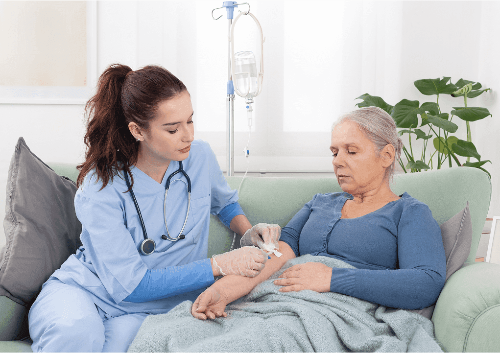 A trained nurse administers your infusion at home with close attention to comfort, safety, and your individual response.